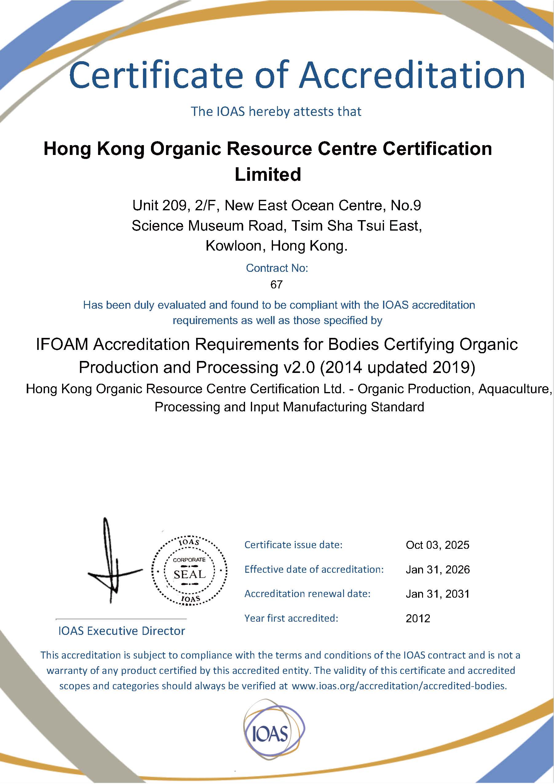 *HKORC-Cert is accredited by IOAS for the scope of product certification. Registration number: 67. Please refer to www.ioas.org/accreditation/accredited-bodies/ for current information.